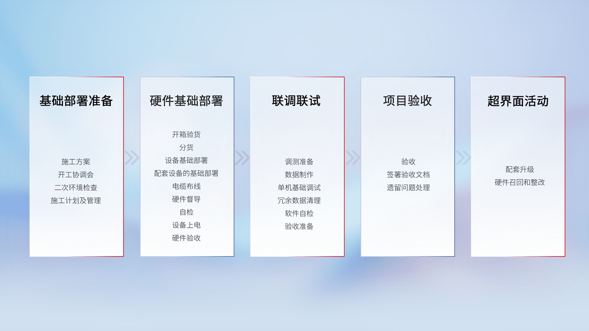 从基础部署准备、、、、硬件基础部署、、、、联调联试、、项目验收、、、越界面活动的全过程可追溯,,保证施工质量和进度。。。。